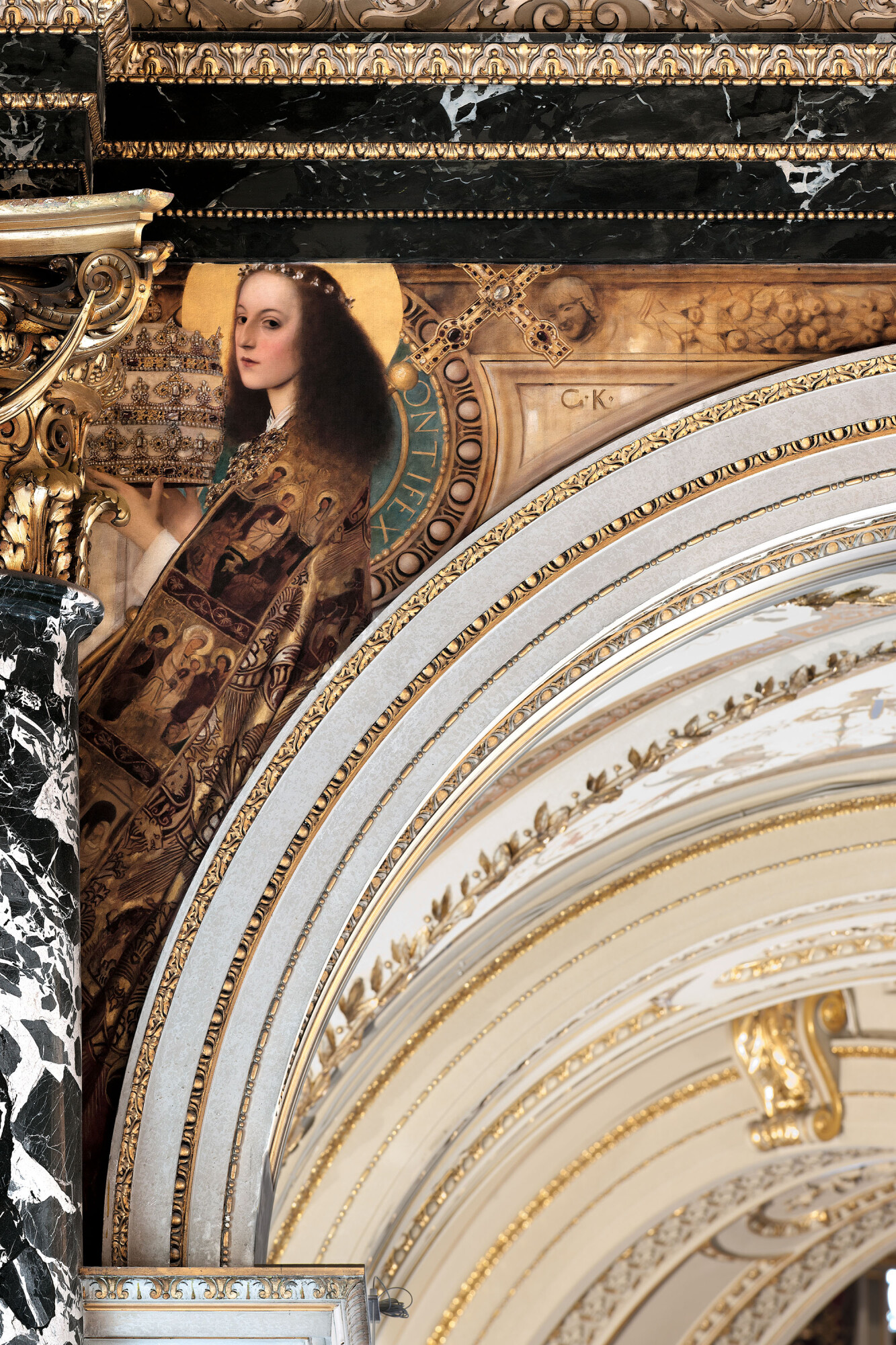 Zwickel- und Interkolumnienbilder von Gustav Klimt im Stiegenhaus des Kunsthistorischen Museums