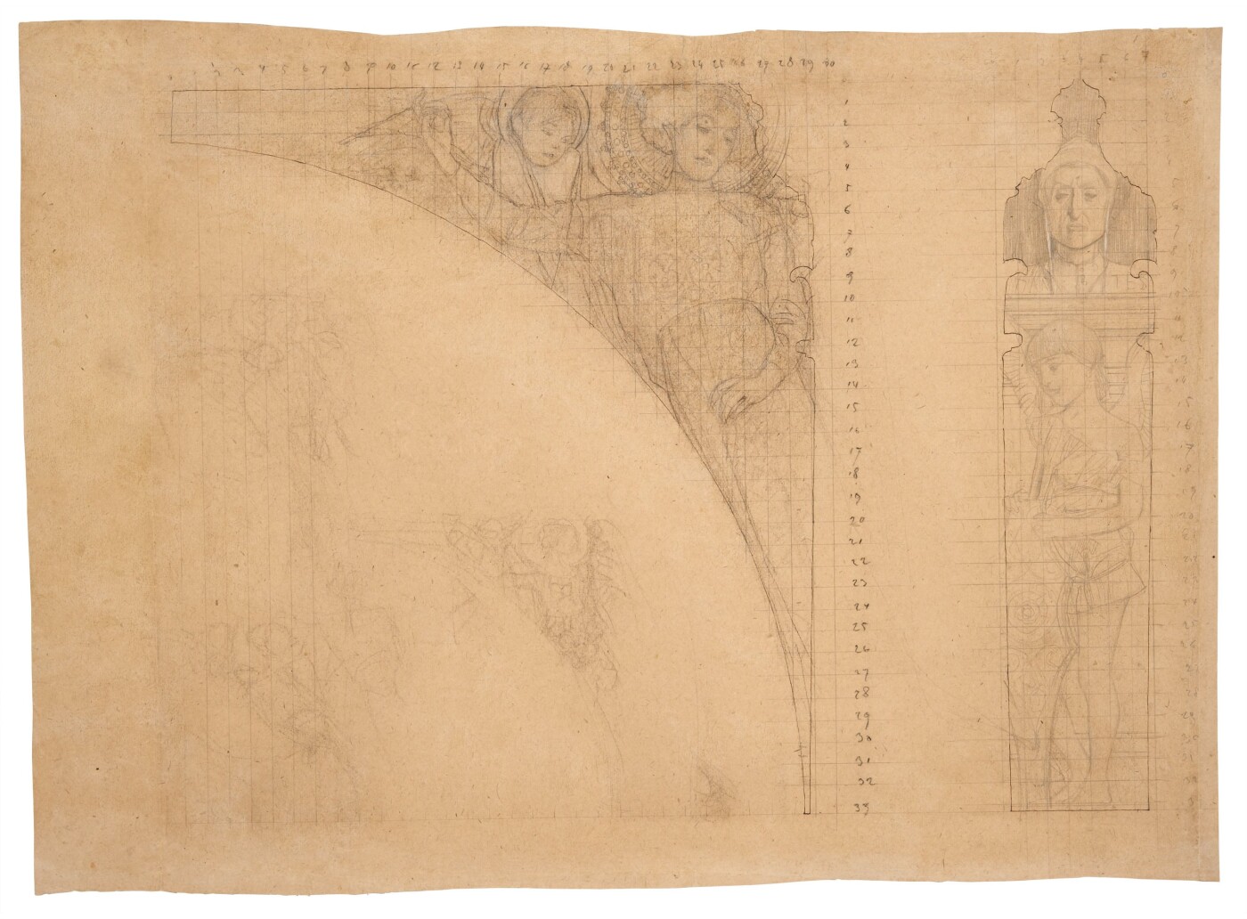 Übertragungsskizzen für die Zwickel- und Interkolumnienbilder von Gustav Klimt
