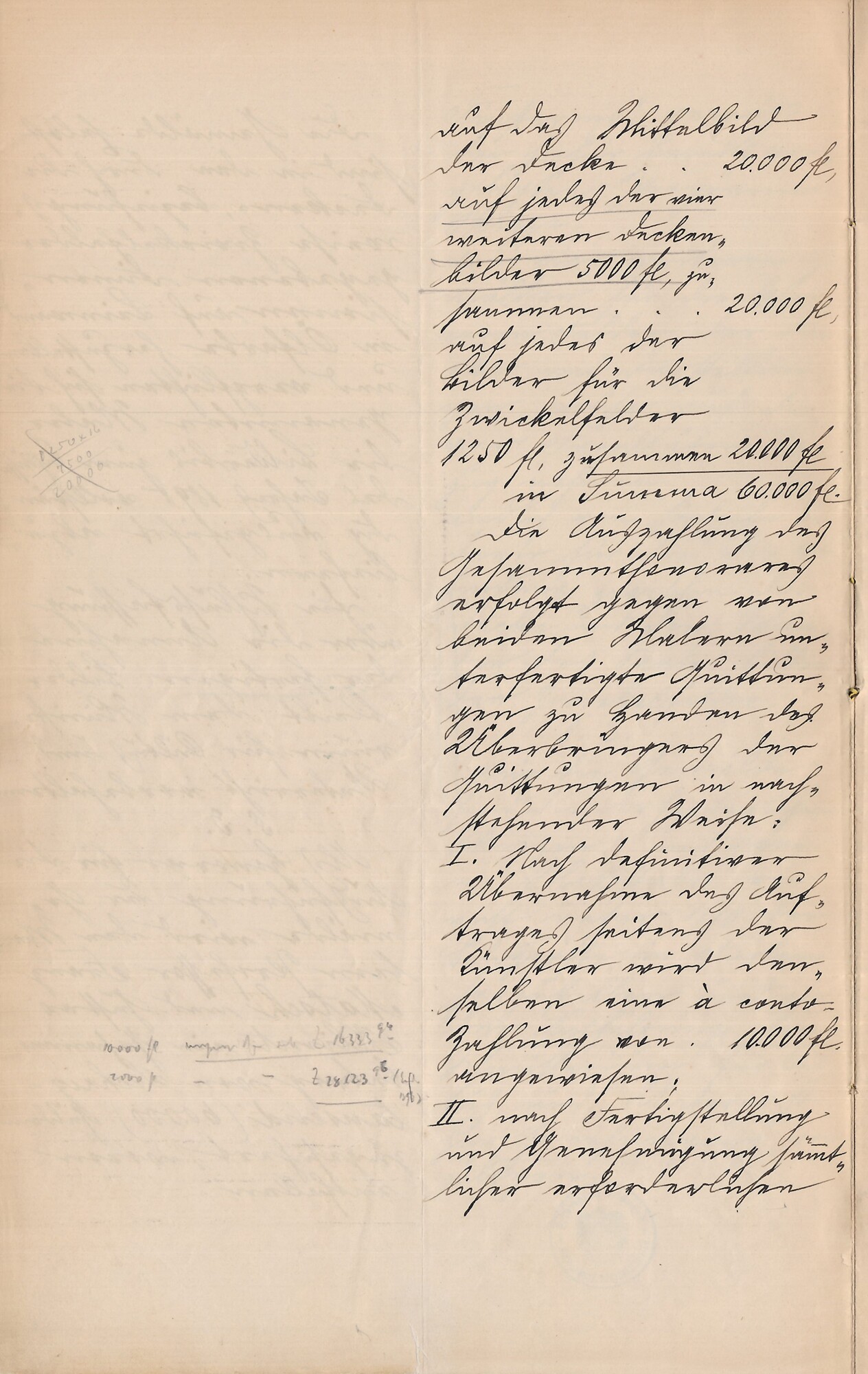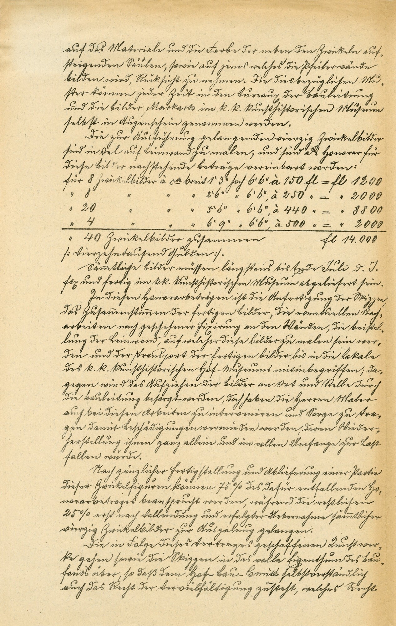 Sie verpflichteten sich, dem Ministerium vor Beginn der Ausführung Farbskizzen zur Genehmigung vorzulegen, die mindestens im Maßstab 1:10 waren. Als Honorar wurde eine Gesamtsumme von 60.000 Gulden (ca. 855.586 Euro) und die Fertigstellung der Arbeiten bis Ende des Jahres 1898 vereinbart. Der Vertrag sah zudem vor, dass bei Verhinderung eines Malers der andere das Projekt zu vollenden hätte.