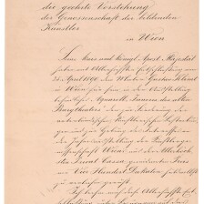 Brief der k. und k. Generaldirection der A. H. Privat- und Familien-Fonde an die Genossenschaft der bildenden Künste Österreichs, unterschrieben von Hofzahlmeister Mayr, 26.04.1890, Künstlerhaus-Archiv, Wien