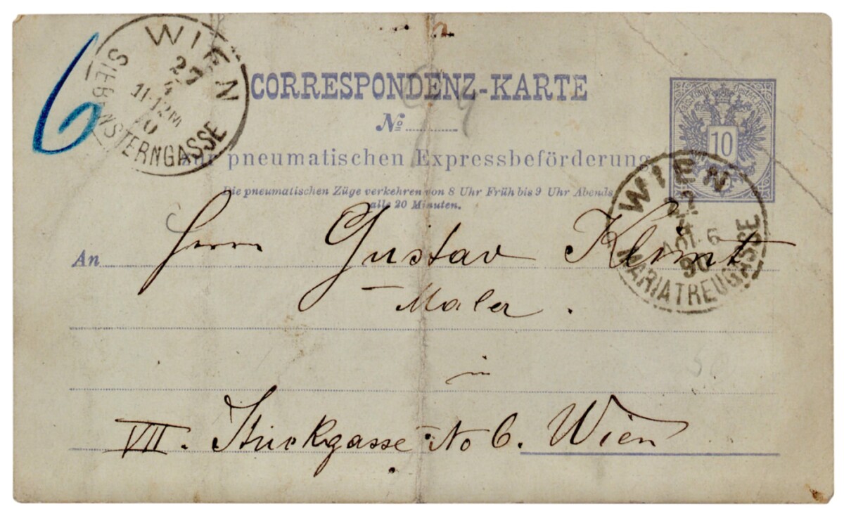 Eduard Veith: Korrespondenzkarte von Eduard Veith in Wien an Gustav Klimt in Wien, 27.04.1890, Albertina