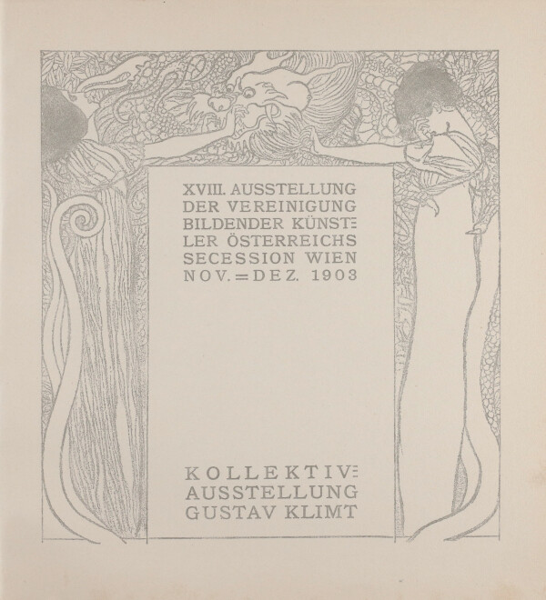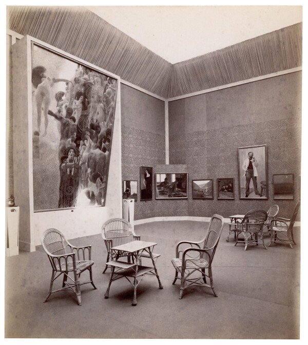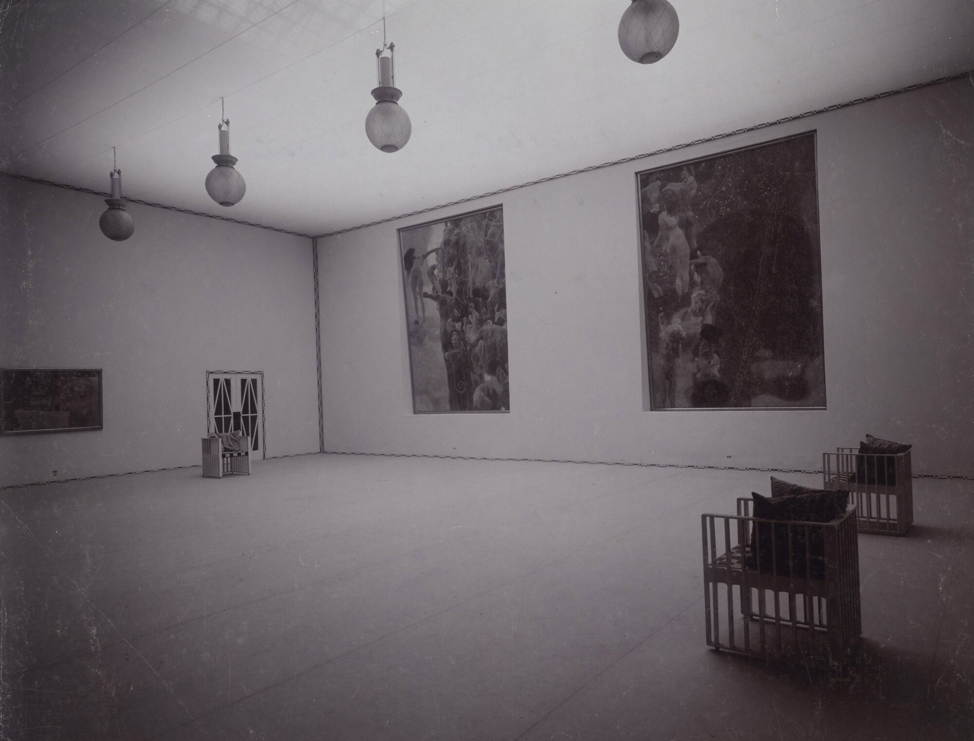 Im April 1902 veranstaltete die Vereinigung bildender Künstler Österreichs eine Sonderausstellung. Bereits im Vorjahr hatte man beschlossen, nicht im gewohnten Stile einzelne Werke diverser Künstler zu präsentieren. Die Schau sollte darauf abzielen einen Raum nach einem Konzept ganzheitlich auszustatten. Die künstlerische Gesamtleitung dieser »Raumkunst« hatte Josef Hoffmann inne. Im Haus der Secession wurde eine eigens für die Ausstellung konzipierte Festarchitektur eingebaut, die entsprechend ausgestattet werden konnte. Ludwig Hevesi bezeichnete diese treffenderweise als »Tempelbau«. Den Mittelpunkt der Ausstellung bildete das Beethovendenkmal des Bildhauers Max Klinger. Alle anderen Künstler sollten ihre Werke um diese Monumentalstatue herum konzipieren und so dem Künstler ihre Huldigung erweisen. Da eine Ausstellung dieser Art ein absolutes Novum in der Wiener Kunstszene darstellte, inkludierte der Katalog eine ausführliche Erläuterung des künstlerischen Gesamtkonzeptes. Klimts Beitrag zu dieser Schau war der monumentale Beethovenfries (1901/02, Belvedere, Wien). Als multimediales Kunstwerk versinnbildlichte er die IX. Symphonie des Komponisten Ludwig van Beethovens.