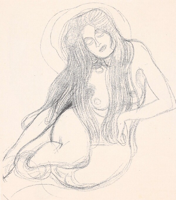 Gustav Klimt: Sitzender Frauenakt, 1902, in: Vereinigung bildender KünstlerInnen Wiener Secession (Hg.): Ver Sacrum. Mitteilungen der Vereinigung bildender Künstler Österreichs, 5. Jg., Heft 10 (1902).
