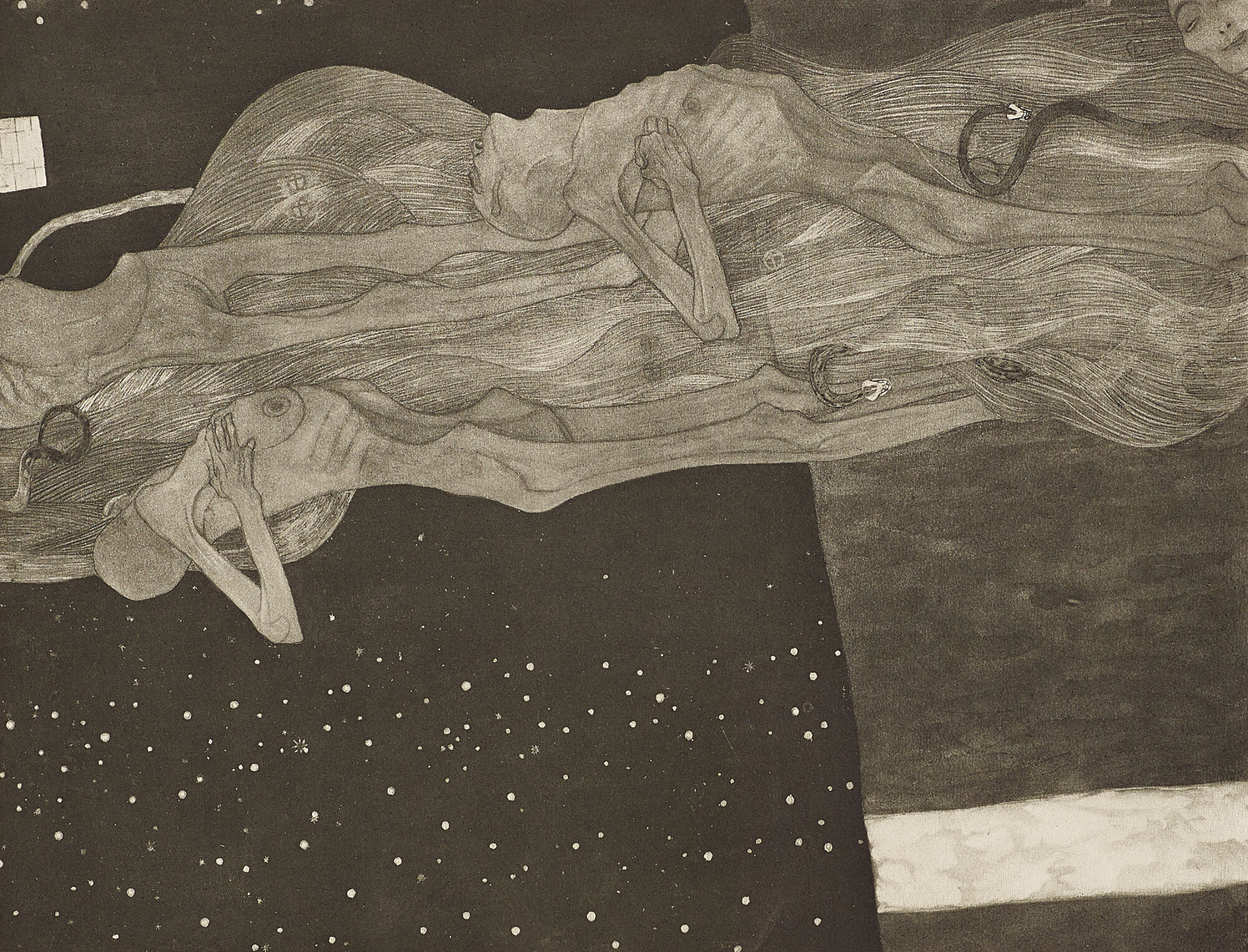 Klimts Schaffen von 1901 bis 1903 ist geprägt von fantastischen, mystischen Figuren wie Nixen, Irrlichtern und neckischen Wasserwesen.