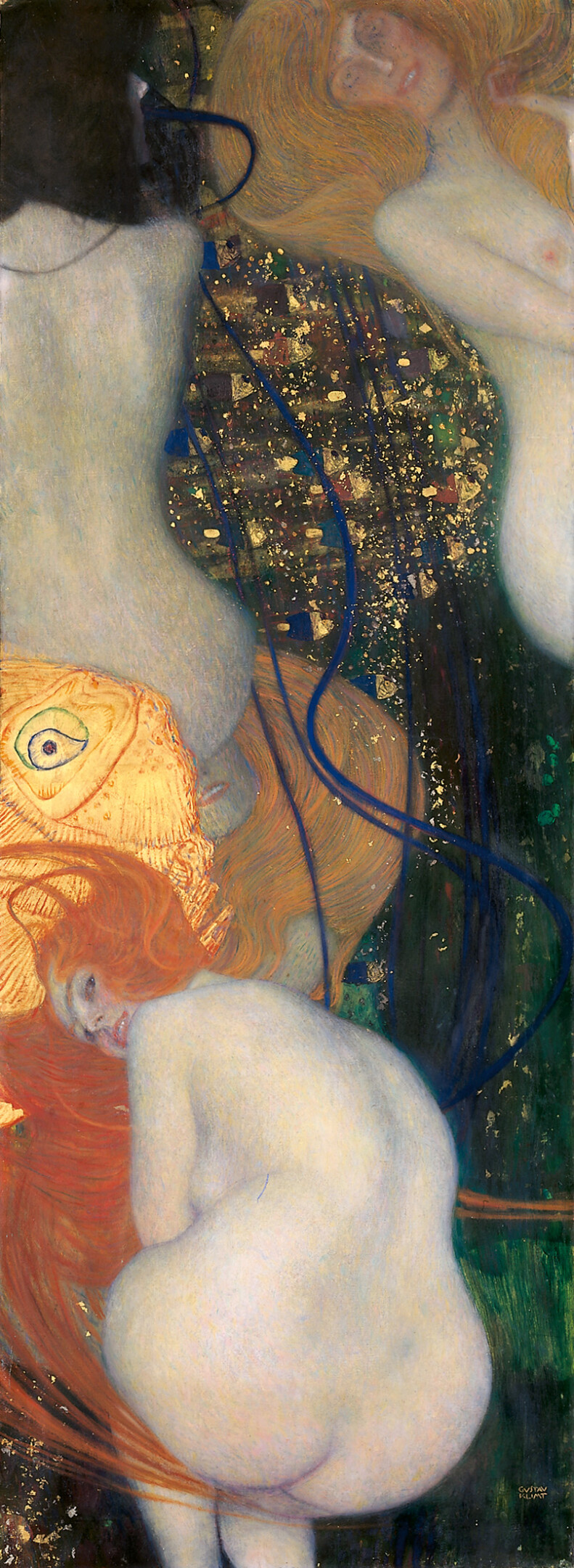 All diese Bilder werden in der Forschung als Belege für das misogyne Frauenbild der Jahrhundertwende aufgefasst. Als Naturwesen entwickelten Frauen, so die damals gängige Meinung, eine erotische Anziehungskraft, die dem Mann gefährlich werden könne. Gustav Klimt verwandelte diese Vorstellung in Bilder von neckisch im Wasser treibenden, meist nackten Frauen mit langen Haaren. Sie schwimmen mit goldenen oder silbernen Fischen, lassen sich in dunkelgrünem Wasser treiben und existieren fern jeglicher kultureller Normen.