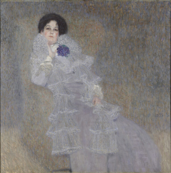 Ab 1900 etablierte sich Gustav Klimt zunehmend als Porträtist der gehobenen Wiener Gesellschaft. Vor allem seine Fähigkeit, die aktuellste Mode in duftiger Malweise auf die Leinwand zu bannen, wurde rasch zu seiner persönlichen Handschrift. Klimt führte in seinen Porträts zudem sukzessive mehr Ornamente ein, die die Flächigkeit seiner nachfolgenden Werke bereits andeuteten.