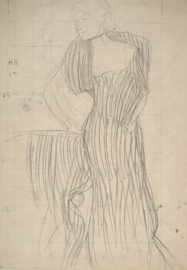 Weitere wichtige Zeichnungen sind im Zusammenhang mit Klimts Porträts der ersten Jahre nach 1900 zu sehen: Die Skizzen für Porträt Rose von Rosthorn-Friedmann (1900/01, Privatbesitz), Porträt Marie Henneberg (1901/02, Stiftung Moritzburg, Kunstmuseum des Landes Sachsen-Anhalt, Halle an der Saale) und erste Kompositionsstudien für das 1907 vollendete Porträt Adele Bloch-Bauer I (1907, Neue Galerie, New York) zeigen allesamt nur die porträtierten Frauen in ihren eleganten Kleidern und verschiedenen Posen. Im Fokus steht hierbei nie die Ausarbeitung der Gesichtspartie; die Dargestellten erscheinen vorwiegend als Gewandfigur. In Bezug auf den Hintergrund hält sich Klimt offenbar alles offen. Die detaillierte Gestaltung des Gesichtes und Hintergrunds scheint dieser hauptsächlich malerisch direkt auf der Leinwand entwickelt zu haben.