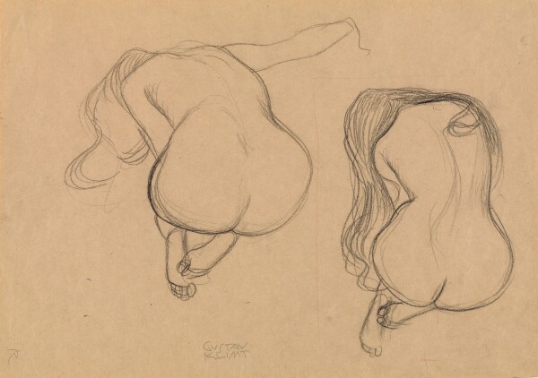 Gustav Klimt: Zwei Studien eines sitzenden Rückenaktes mit langem Haar, 1901/02, The J. Paul Getty Museum