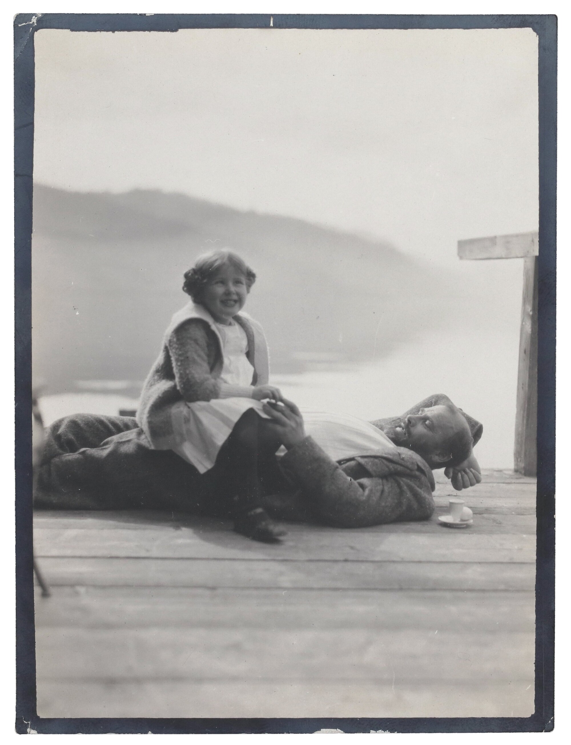 Gertrude Flöge und Gustav Klimt auf dem Bootssteg der Villa Paulick, vermutlich März 1913, Klimt-Foundation