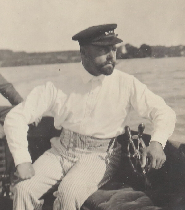 Paul Bacher in einem Motorboot am Attersee, 1906, Privatbesitz