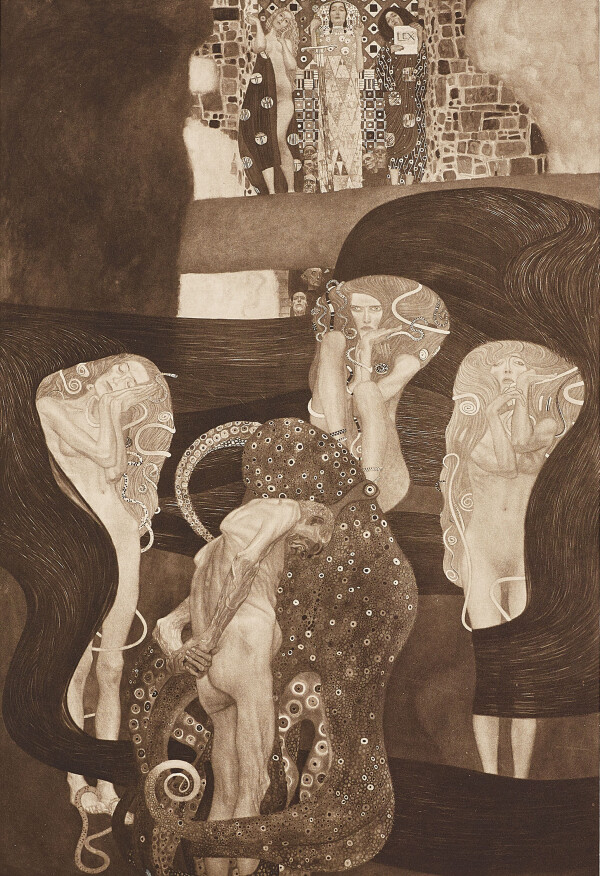 Gustav Klimt: Die Jurisprudenz, 1903-1907, 1945 in Schloss Immendorf verbrannt, in: Kunstverlag Hugo Heller (Hg.): Das Werk von Gustav Klimt, Wien - Leipzig 1918.