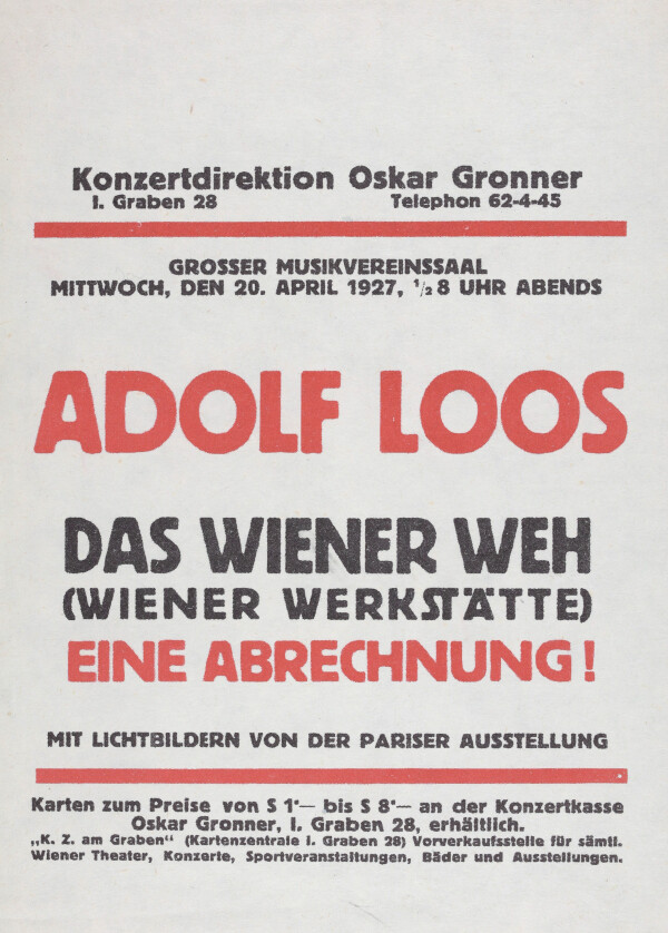 Plakat "Das Wiener Weh" (Wiener Werkstätte) Eine Abrechnung!", 20.04.1927