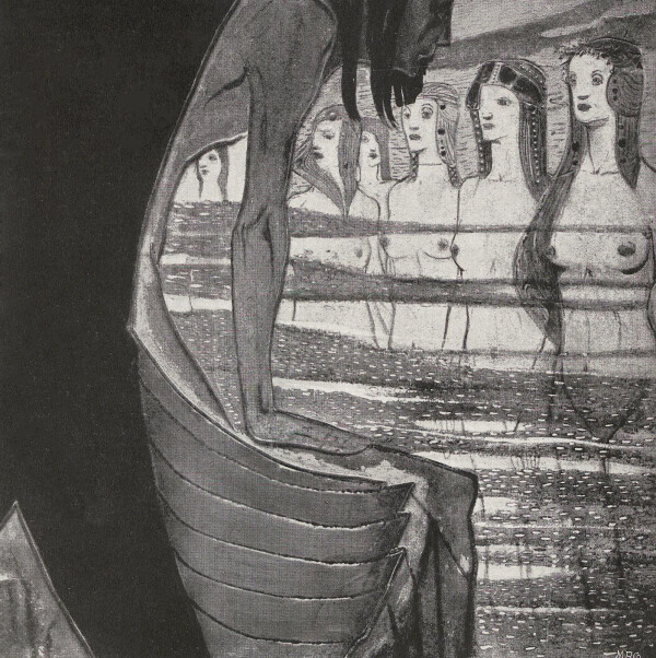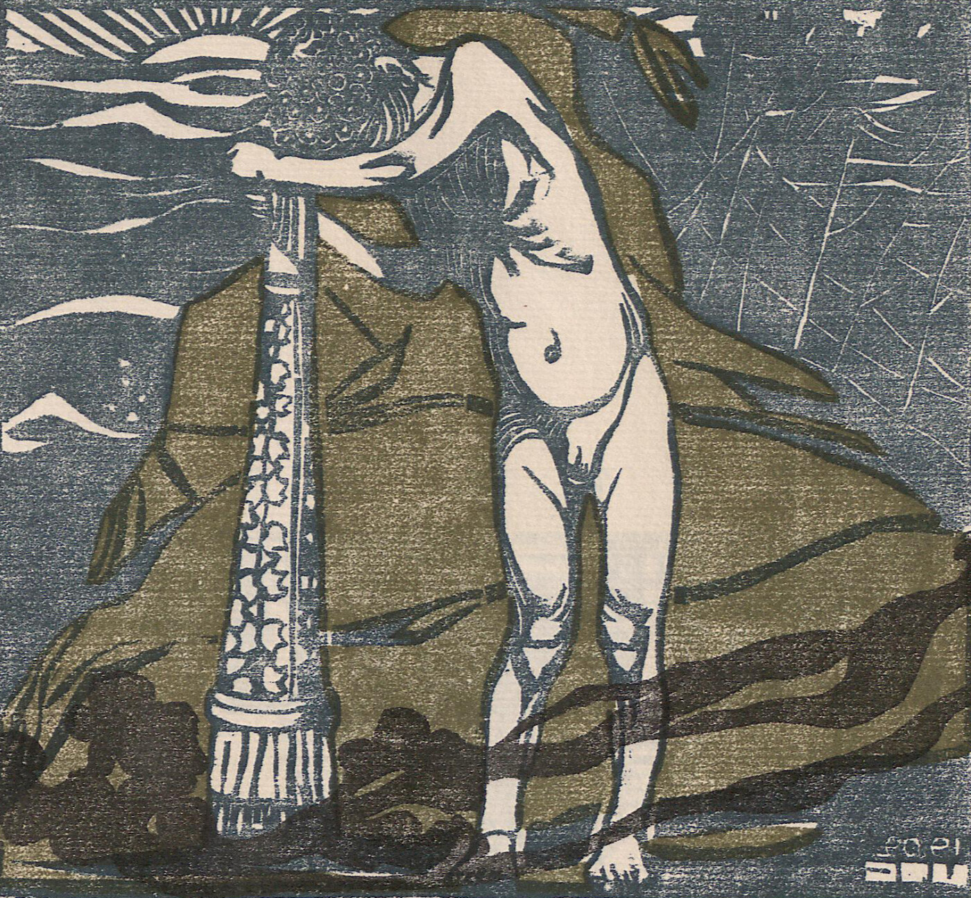 Elena Luksch-Makowskys Signet für die Beethovenausstellung der Secession, 1903, in: Vereinigung bildender Künstler Österreichs Secession (Hg.): XIV. Ausstellung der Vereinigung bildender Künstler Österreichs Secession. Klinger Beethoven, Ausst.-Kat., Secession (Wien), 15.04.1902–15.06.1902, Wien 1902.