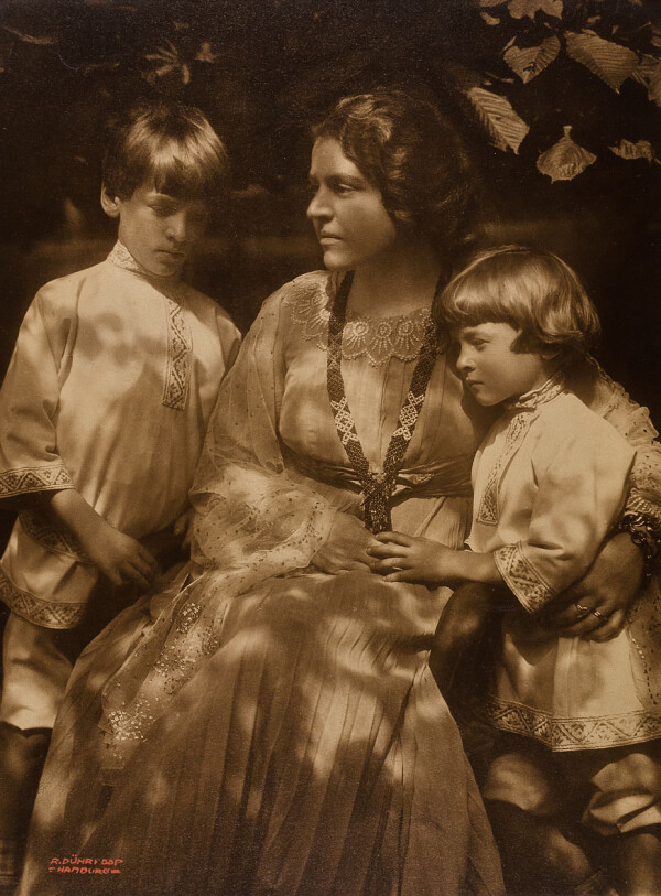Elena Luksch Makowsky mit ihren beiden Söhnen Peter und Andreas fotografiert von Peter Dührkoop, 1907, Museum für Kunst und Gewerbe Hamburg