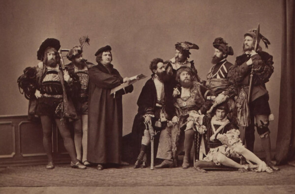 Hans Makart mit Künstlern bei einem Kostümfest fotografiert von Viktor Angerer, um 1879