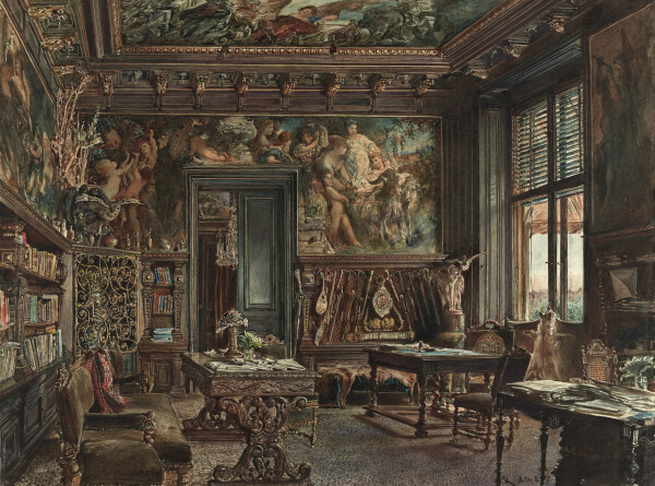 Rudolf von Alt: Bibliothek im Palais Dumba ausgestattet von Hans Makart, 1877, Wien Museum
