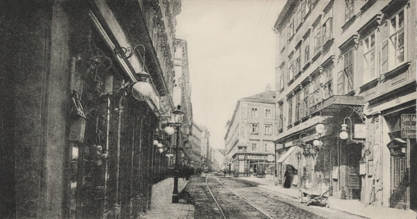 Einblick in die Josefstädterstraße mit dem Theater in der Josefstadt, vor 1905, Wien Museum