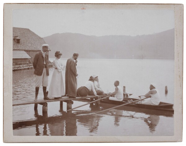 Gustav Klimt mit Freunden am Bootssteg in Litzlberg, vermutlich Sommer 1905, Klimt-Foundation
