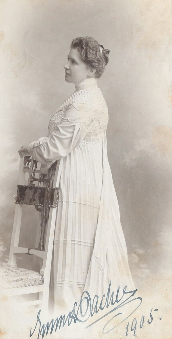Emma Bacher, 1905, in: Rudolf Schuh: Nr. 7. "Aus meinem Leben" von Dr. Rudolf Schuh in Seewalchen am Attersee - 1908 bis 1910, in: Autobiografie Dr. Rudolf Schuh, S. 2301-2446.