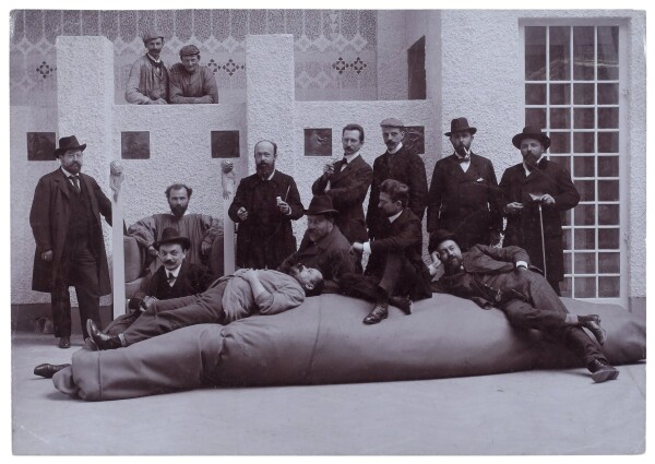 Moriz Nähr: Gustav Klimt mit den beteiligten Künstlern der XIV. Secessionsausstellung, April 1902, Klimt-Foundation