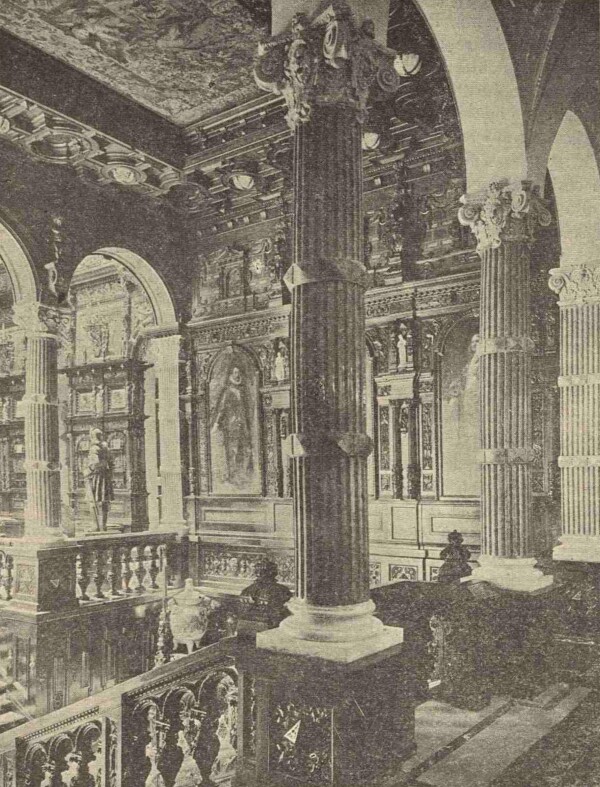 Insight into the ceremonial hall of Pelesch Castle, circa 1924, in: Mihai Haret: Castelul Peleş, Bucharest 1924.