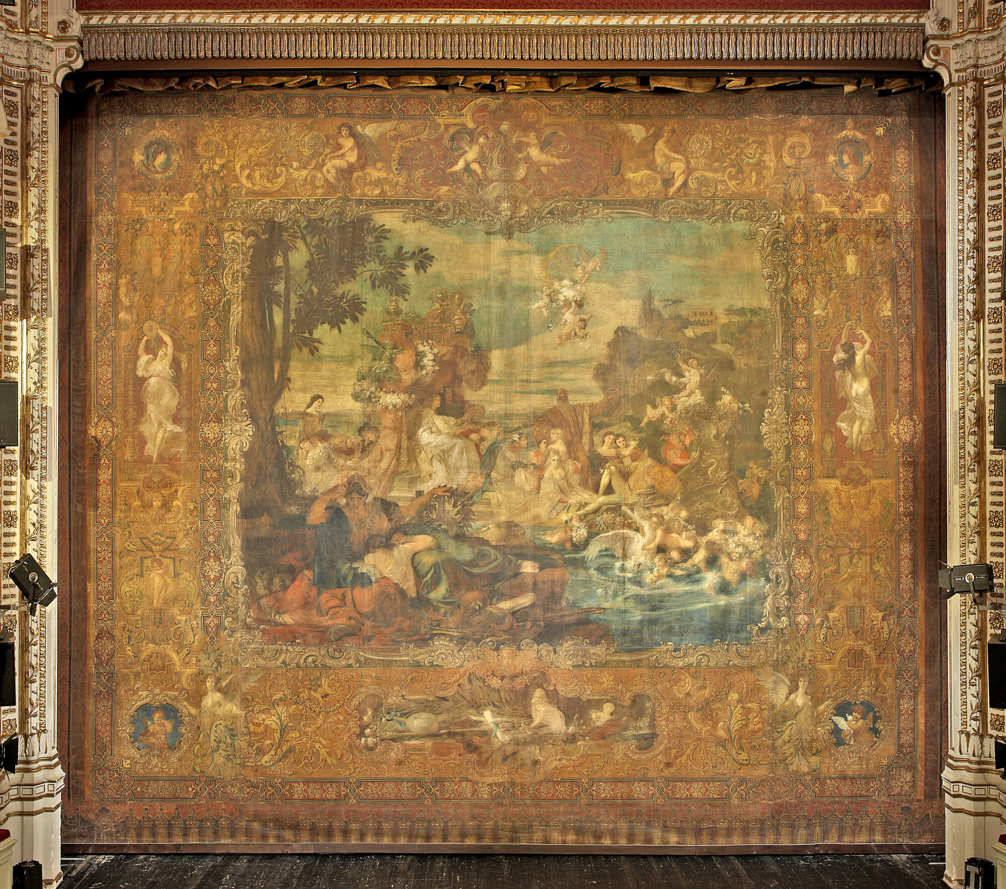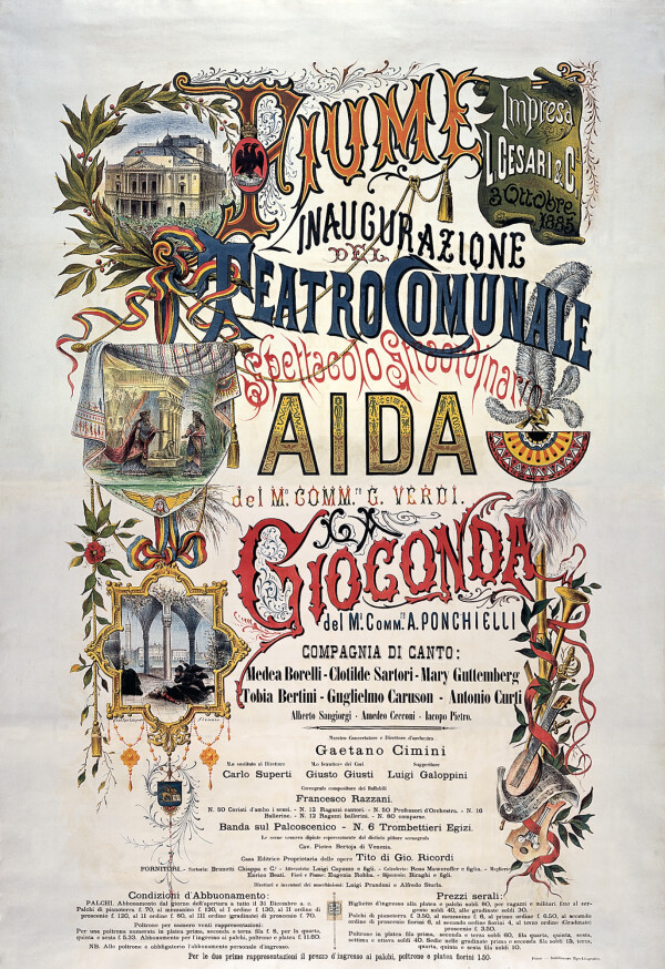 In the mid-1880s, the “Künstler-Compagnie” received the commission to decorate the interior of the municipal theater in Fiume – yet another theater designed by Fellner & Helmer. The commission included six ceiling paintings, as well as a proscenium painting and two smaller paintings for the auditorium.