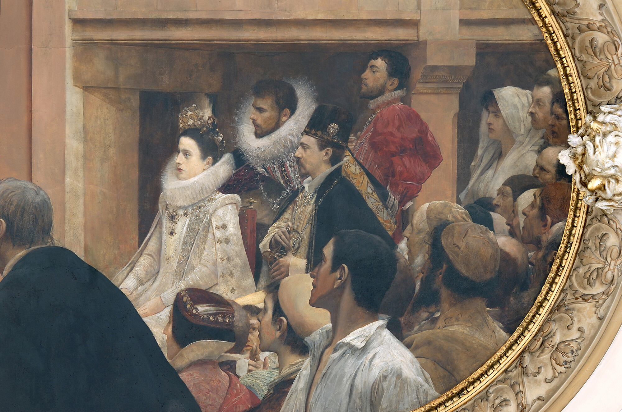 From 1883 to 1886, the “Künstler-Compagnie” worked on the decoration of Peleș Castle in Romania. This varied and challenging major commission included the creation of ten ancestral portraits, copies after Old Masters from the Imperial art collection as well as the decoration of the castle’s small theater.