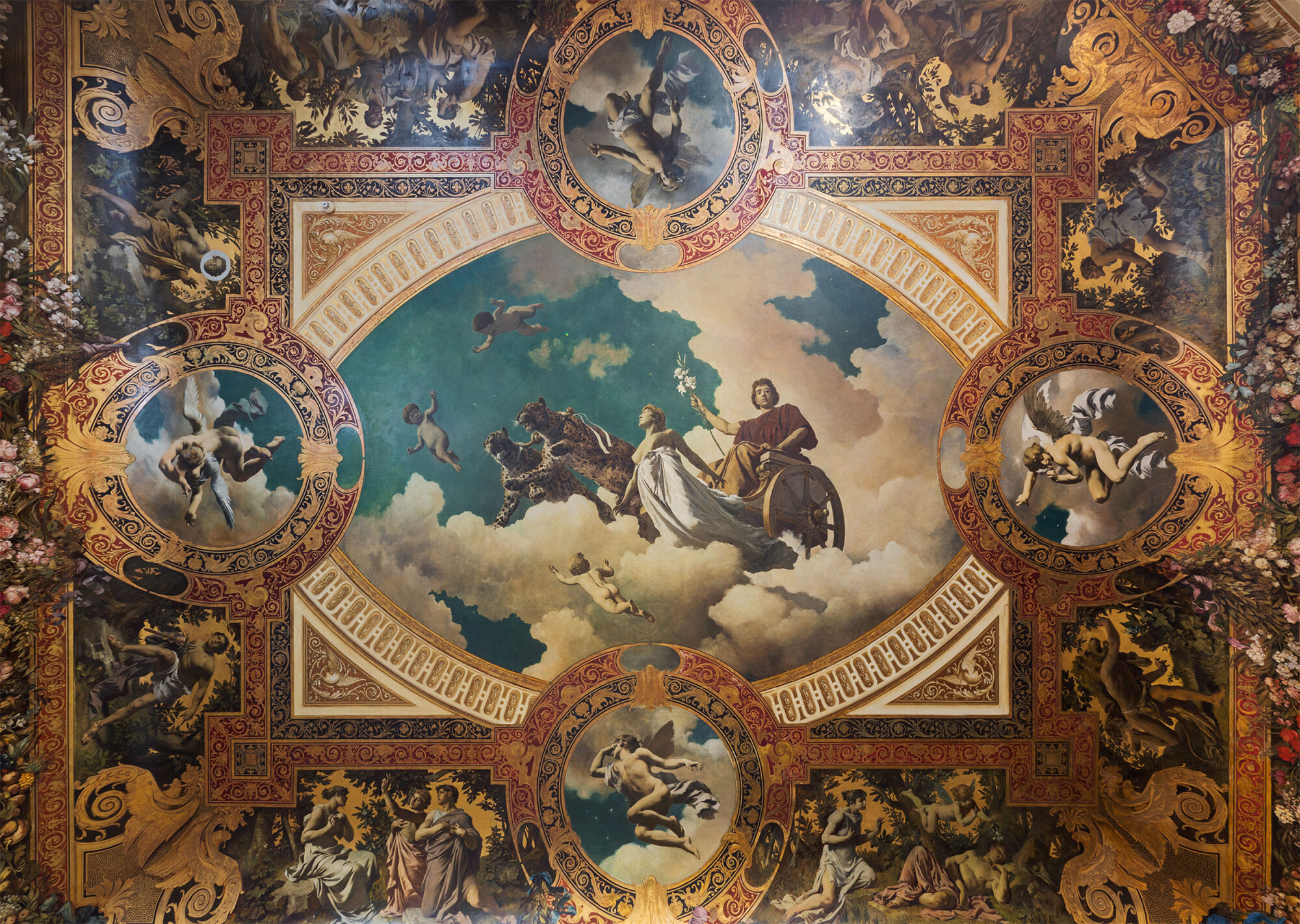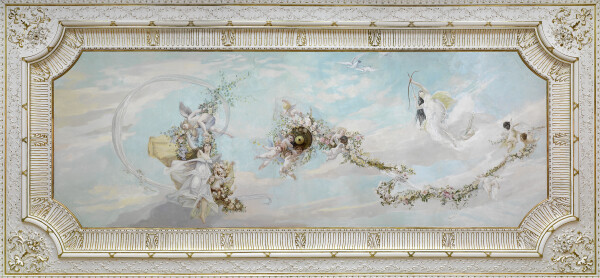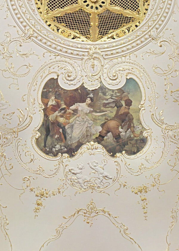 The “Künstler-Compagnie” decorated the cavetto of Empress Elisabeth’s bedroom in the Hermesvilla with scenes from William Shakespeare’s A Midsummer Night’s Dream, and created a ceiling painting for the villa’s salon. They partly worked from drafts by their former teacher Julius Victor Berger, and partly after their own designs.