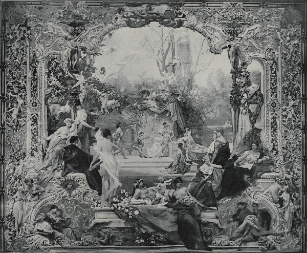 Gustav Klimt’s contributions to the portfolio comprised the drawings The Times of the Day (1881, Wien Museum, Vienna), which was based on the borders of the prayer book of Emperor Maximilian I (1513, Bayerische Staatsbibliothek, Munich), The Realms of Nature (1882, Wien Museum, Vienna), Youth (1882, Wien Museum, Vienna), Opera (1883, Wien Museum, Vienna), and Fairy-Tale (1884, Wien Museum, Vienna).