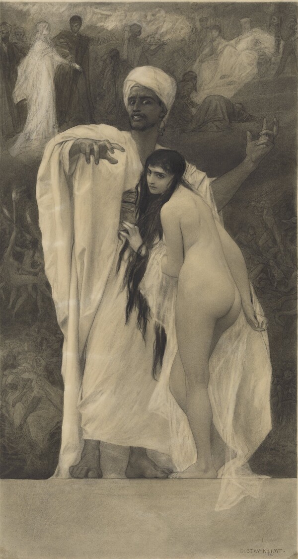 Starting in 1881, Gustav Klimt, commissioned by Martin Gerlach, worked on the sample collection Allegorien und Embleme [Allegories and Emblems]. He supplied designs for various allegories for this compilation of prints in the media of both drawing and oil painting.