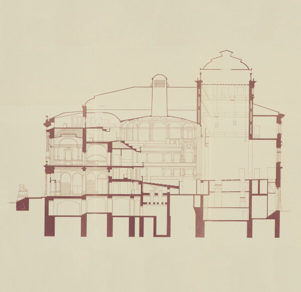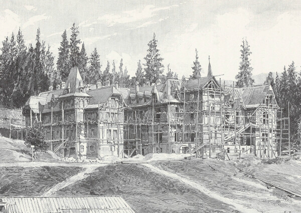 Construction of Pelesch Castle, in: Jacob von Falke: Das rumänische Königsschloss Pelesch, Vienna 1893.