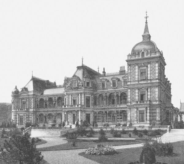 Hermesvilla in the Lainzer Tiergarten, an etching after a photograph by Josef Löwy