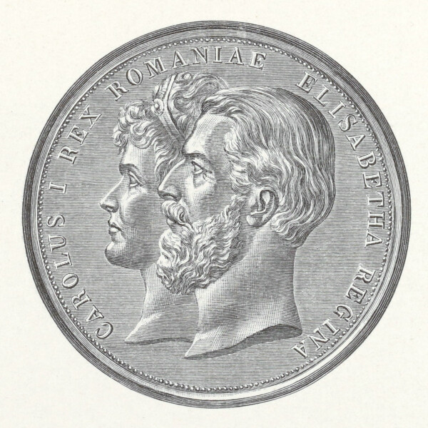 Obverse of a medal created by Wilhelm Kullrich on the occasion of the completion of Pelesch Castle, 1883, in: Jacob von Falke: Das rumänische Königsschloss Pelesch, Vienna 1893.