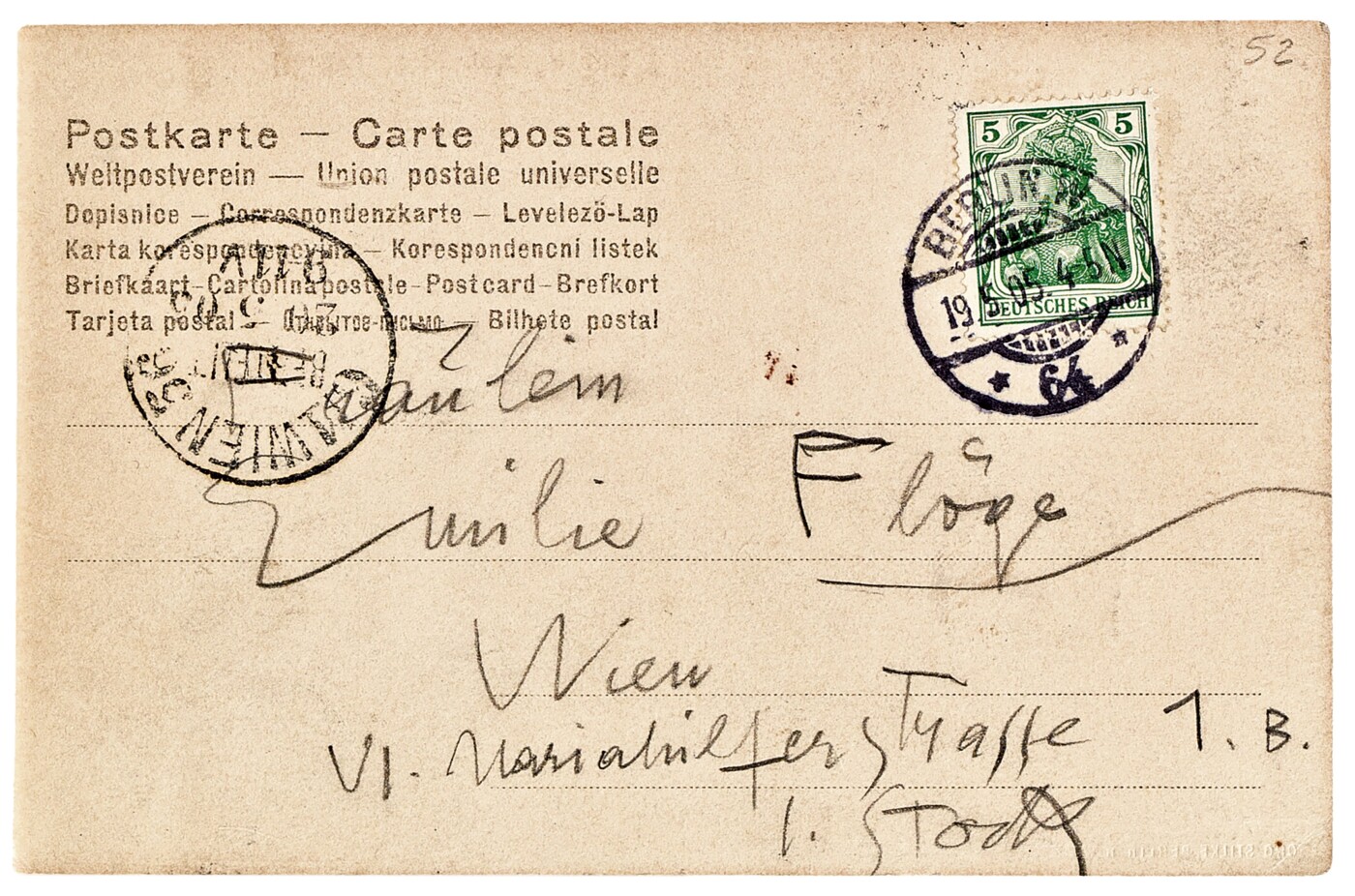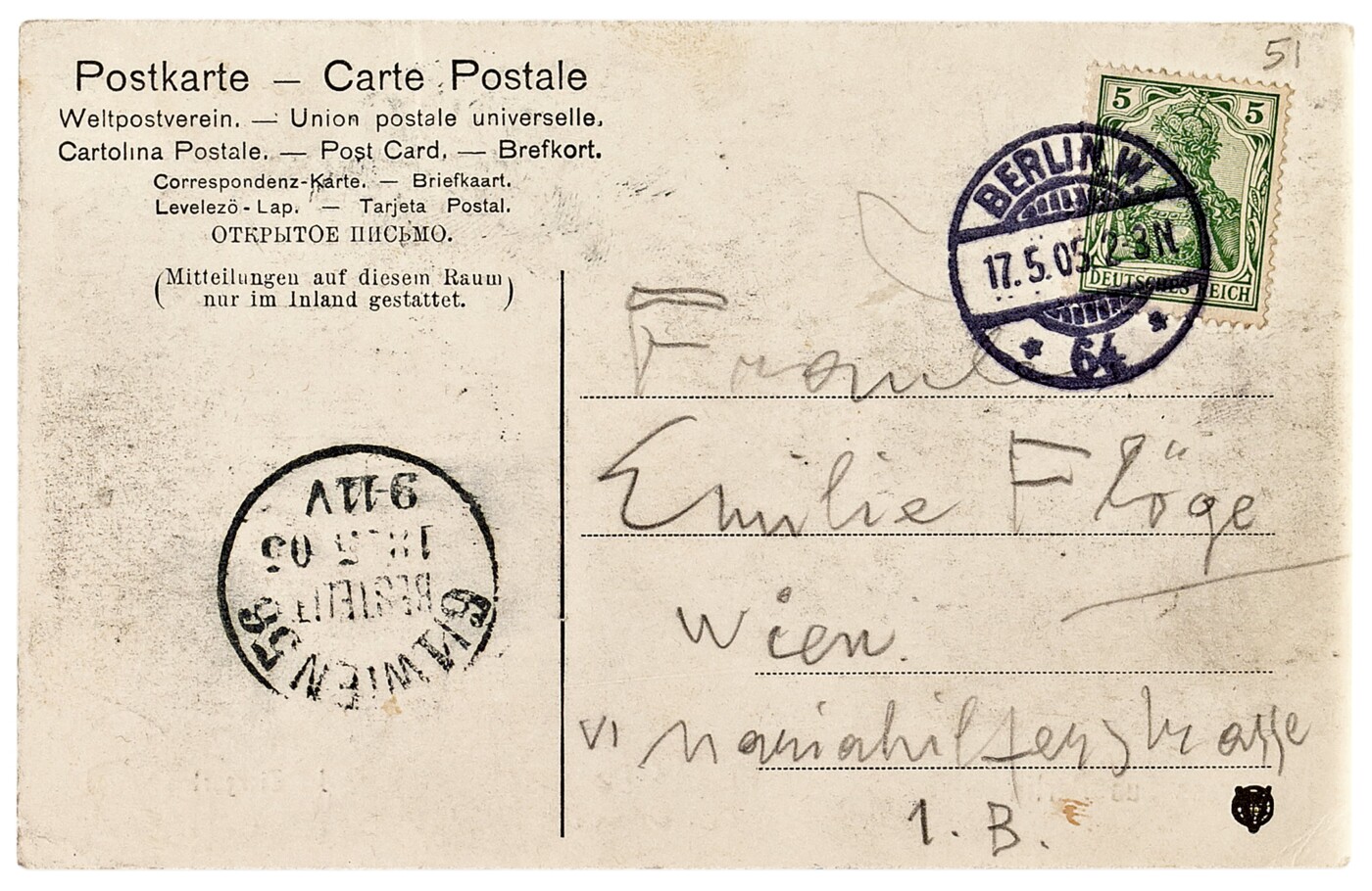 - Ansichtskarte von Gustav Klimt in Berlin an Emilie Flöge in Wien (05/19/1905).