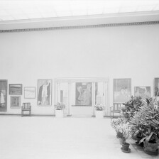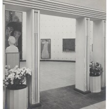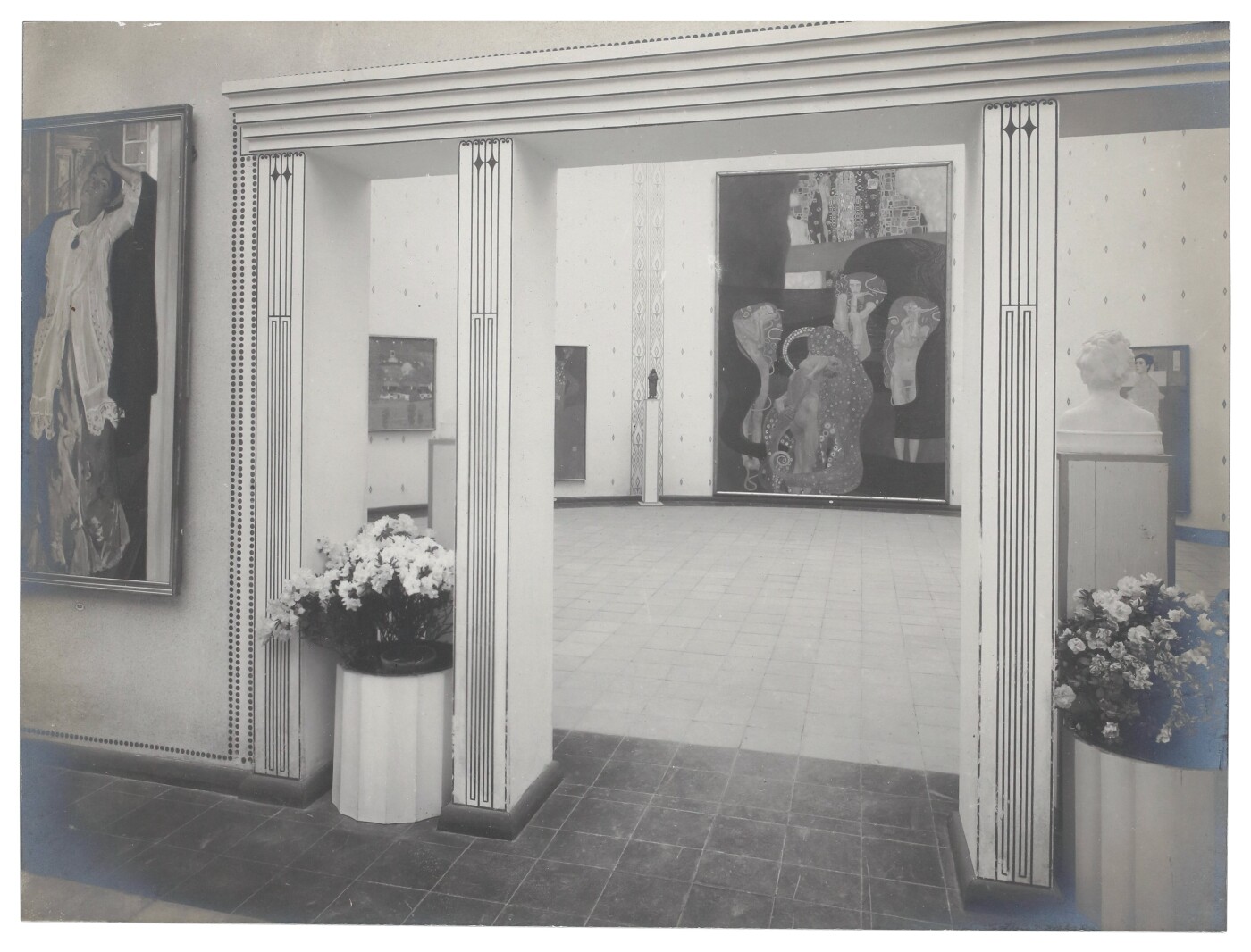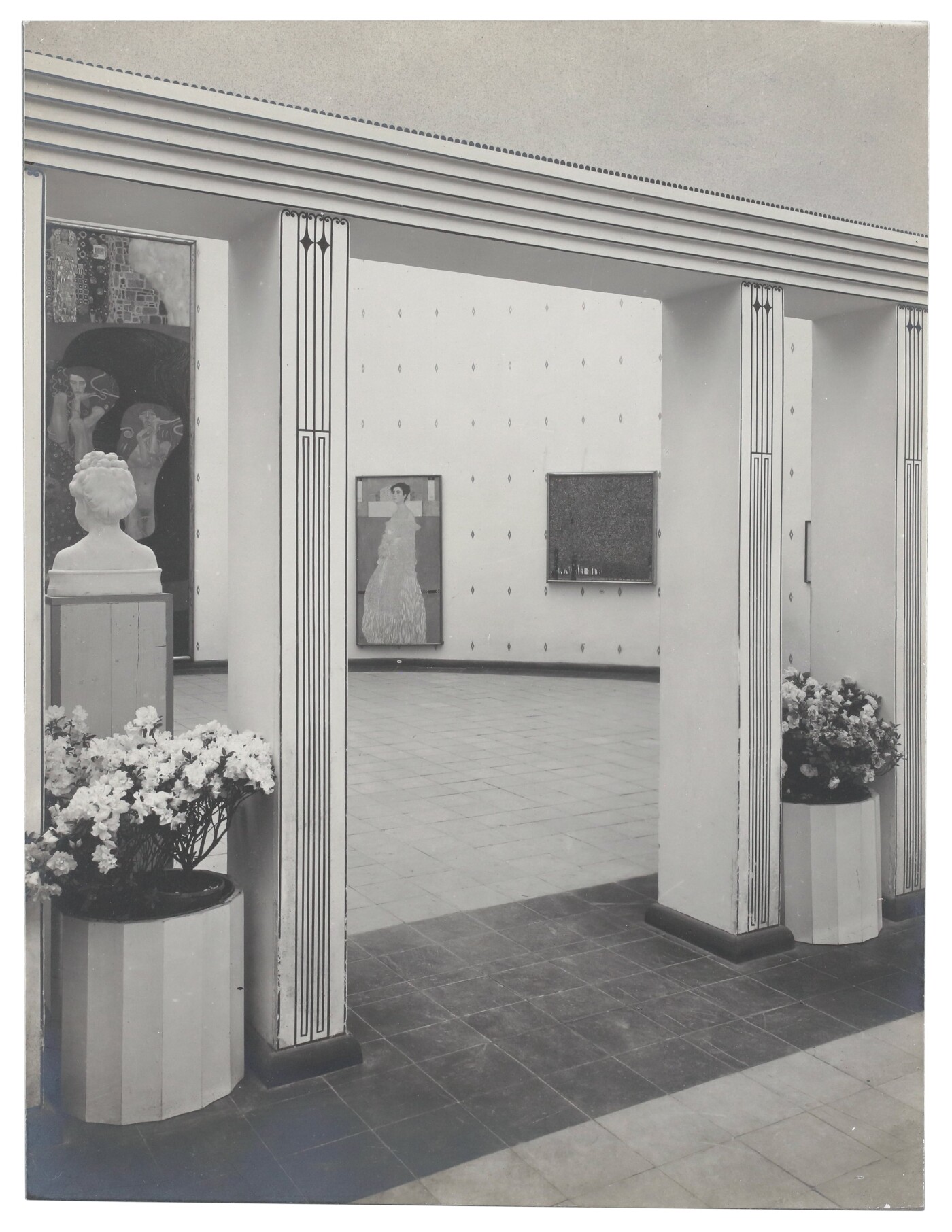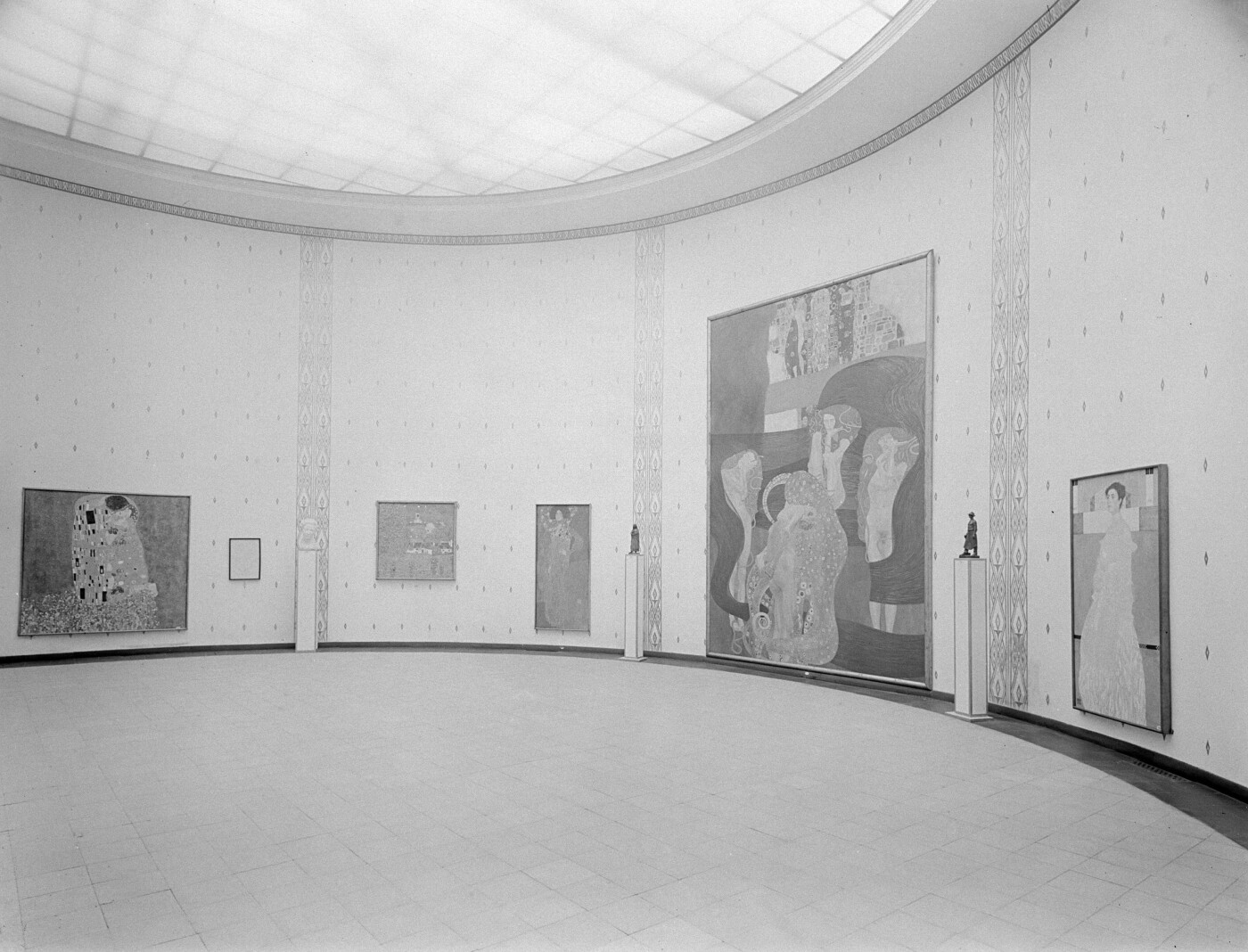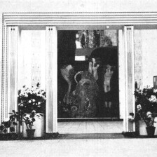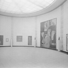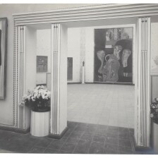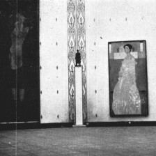 Numerous photographs taken in 1911 document the Austrian Pavilion from the inside and outside. Some of them also show views of the Klimt Room, with Jurisprudence (1903, final version 1907, destroyed by fire at Immendorf Castle in 1945) placed prominently directly opposite the entrance. The series of photographs was published that same year in a special portfolio edited by Verlag Brüder Rosenbaum.