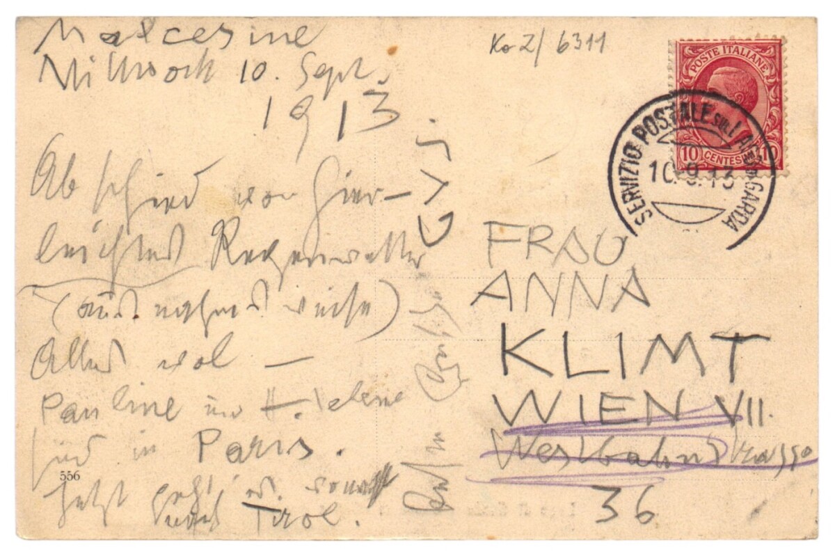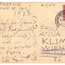 - Ansichtskarte von Gustav Klimt in Wien an Emilie Flöge in Paris, 2. Karte (03/06/1913). Autogr. 959/48-3, .