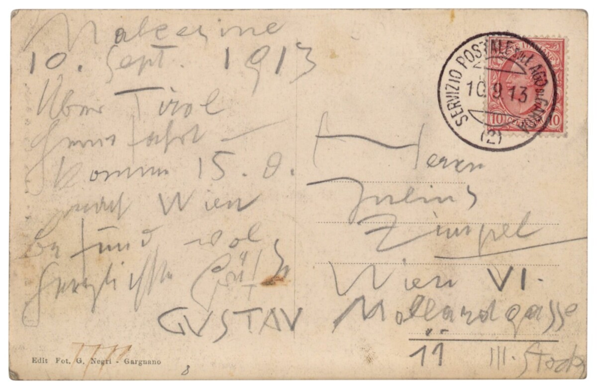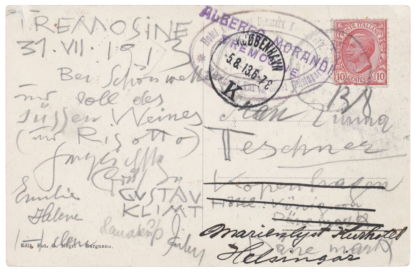 - Ansichtskarte von Gustav Klimt in Torbole am Gardasee an Emilie Flöge in Wien (12/10/1903).