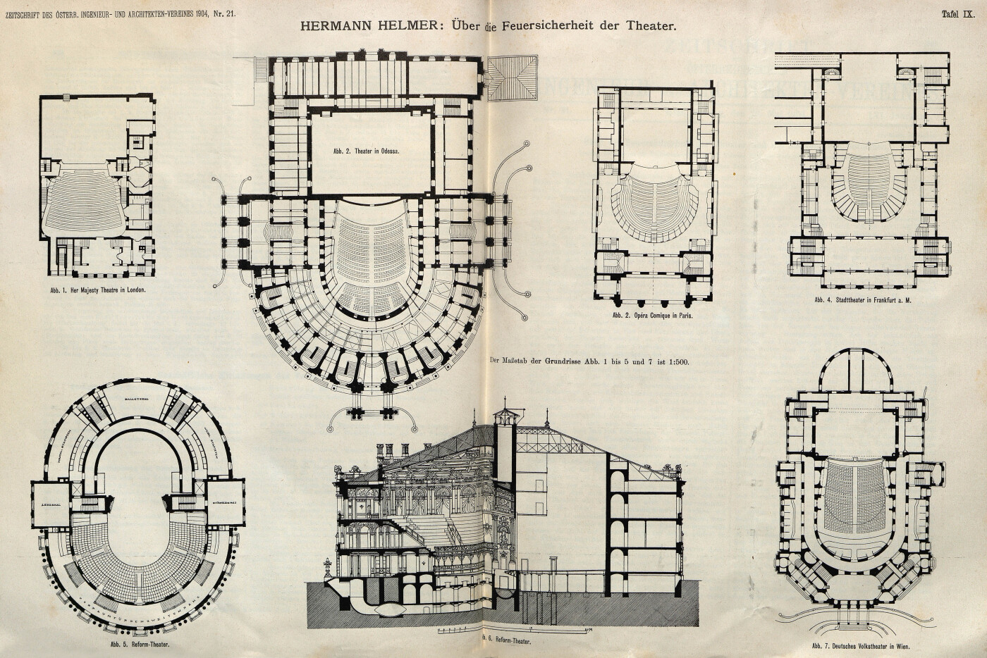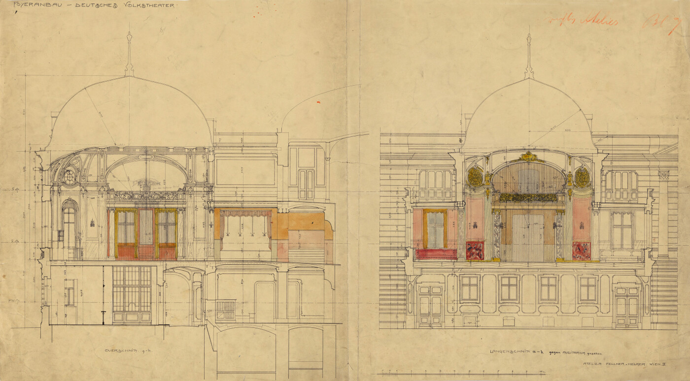 Fellner & Helmer specialized in modern theater buildings. Between 1874 and 1916, they planned and built numerous theaters and concert halls across Europe. Their architectural firm had an excellent reputation, because they worked efficiently and responsibly and kept costs low. Fellner & Helmer also made a name for themselves with the development of new architectural fire protection standards, which became a prerequisite for theater buildings after the fire at the Ringtheater in 1888 and are still in effect today.