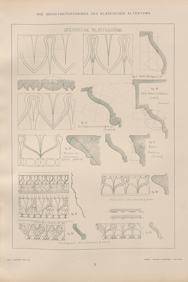 Alois Hauser: Archaeological drawings, in: Constantin Uhude: Die Architekturformen des klassischen Alterthums mit besonderer Berücksichtigung der Säulenordnung und Gesimsbildung, Berlin 1902.