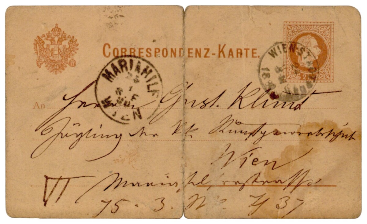 Correspondence Card from Ferdinand Laufberger to Gustav Klimt
