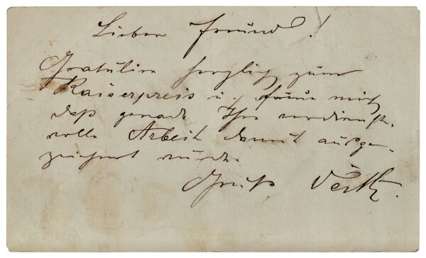 - Korrespondenzkarte von Eduard Veith in Wien an Gustav Klimt in Wien (27.04.1890). GKA50.