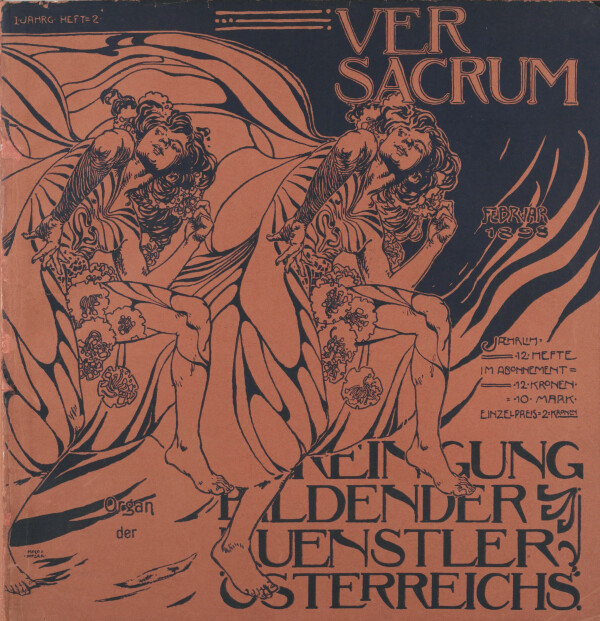 Kolo Moser: Illustrated cover, in: Vereinigung bildender Künstler Österreichs Secession (Hg.): Ver Sacrum. Organ der Vereinigung bildender Künstler Österreichs, 1. Jg., Heft 2 (1898).