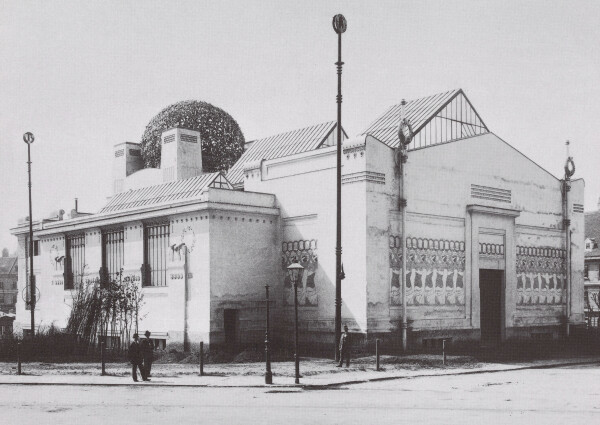 Vienna Association, rear view with the fresco Reigen der Kranzträgerinnen by Kolo Moser, around 1898