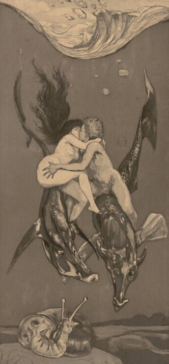 From 1879 on, Klinger lived abroad for several years. During this time, he realized several etching cycles that stylistically referred back to works by Arnold Böcklin and mostly reveal Surrealist and Symbolist traits. These brought him international recognition and awards.