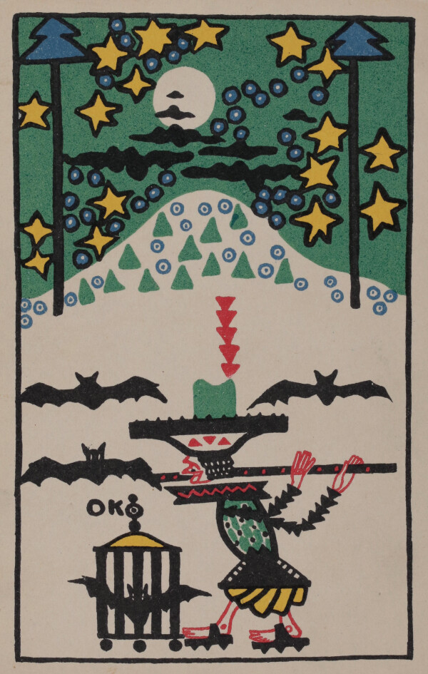 Oskar Kokoschka: Postcard "Flute player and bats" from the Wiener Werkstätte, 1907