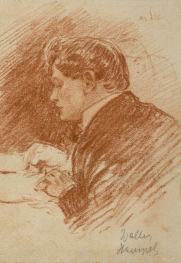 Sigmund Walter Hampel was born in 1867 in Vienna, the son of a painter. He initially studied “drawing and sculpting” for a year at the Staatsgewerbeschule [state trade school] in the 4th district of Vienna, before transferring in 1885 to the Vienna Academy of Fine Arts, where he attended the special classes headed by the painters Heinrich von Angeli, August Eisenmenger and Siegmund L’Allemand. In 1888, the young artist was expelled for opposing the academy’s prevalent teaching methods. After this, Hampel studied independently. Except for his participations in several Viennese exhibitions – his works featured, among other presentations, in the 1898 “Jubiläums-Kunstausstellung im Künstlerhaus” [Jubilee Art Exhibition at the Künstlerhaus] – Hampel’s further artistic career until the turn of the century is almost impossible to trace.