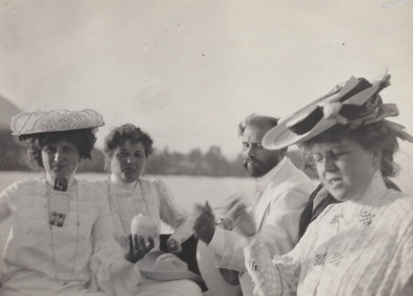 Gustav Klimt with the Flöge sisters in Paul Bacher's motorboat "Namenlos" on Lake Attersee, summer 1905, Klimt Foundation