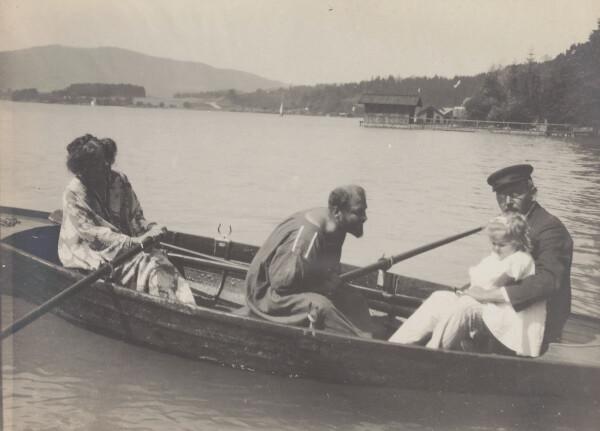 Gustav Klimt and the Flöges in a rowing boat on Lake Attersee in front of Villa Paulick, summer 1909, Klimt Foundation