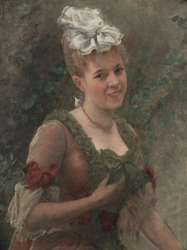 Born in Vienna on 21 December 1866, Pauline Magdalena Flöge trained as a dressmaker. In 1895 she opened a private dressmaking school. She was also portrayed by Klimt, such as in the painting Pauline Flöge in a Rococo Costume (1892–1894, ARGE Sammlung Gustav Klimt). In 1904 she gave up her position as a teacher and founded her own fashion salon together with her sisters Helene and Emilie. She was in charge of the office and saw to administrative matters. Pauline died on 3 July 1917. Klimt portrayed her on her deathbed, but this work is believed to have burned in 1945.
