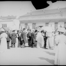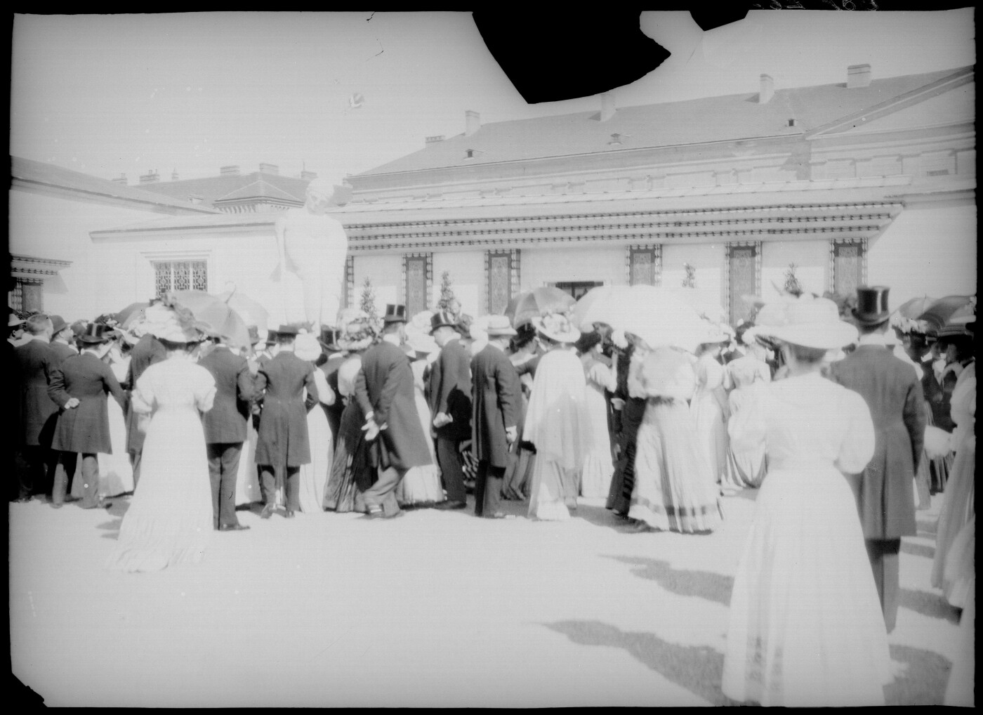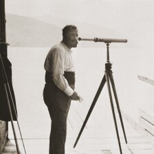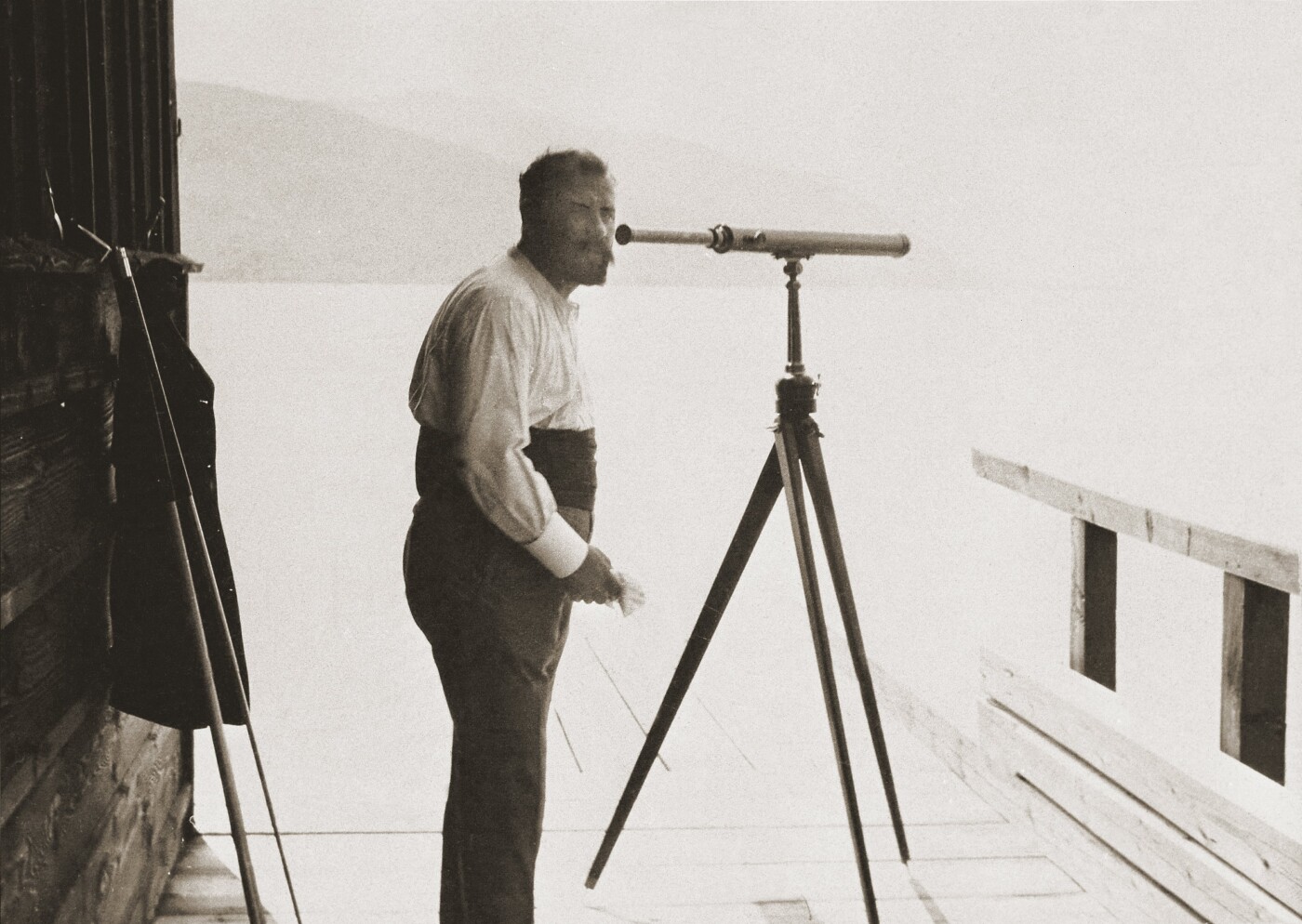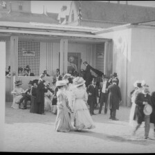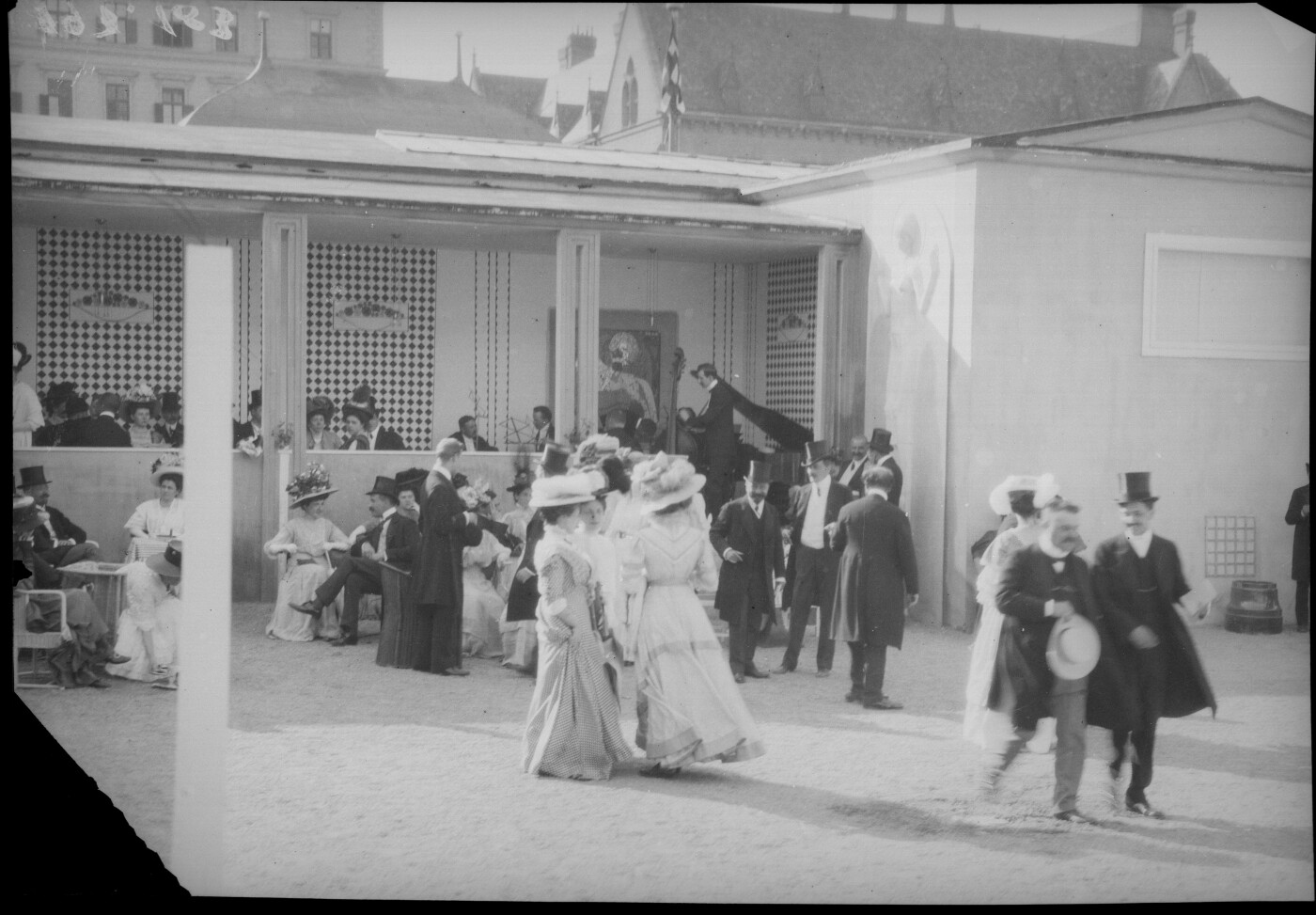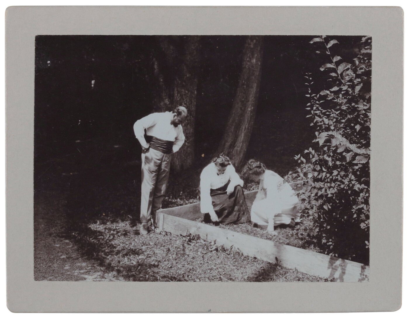 Emma Bacher herself took a keen interest in amateur photography. In 1908, she documented the opening of the “Kunstschau Wien” with her photographs. Equipped with a small camera, she captured the visitors – among them family members – on the exhibition grounds in a series of snapshots. We further owe several private photographs taken during the summer sojourns on the Attersee to her. Boasting the “snapshot format,” a format typical for amateur photographers measuring approx. 12 x 9 cm, the pictures show Klimt and Emilie Flöge with friends and family members during boat rides and in the environs of Villa Paulick.